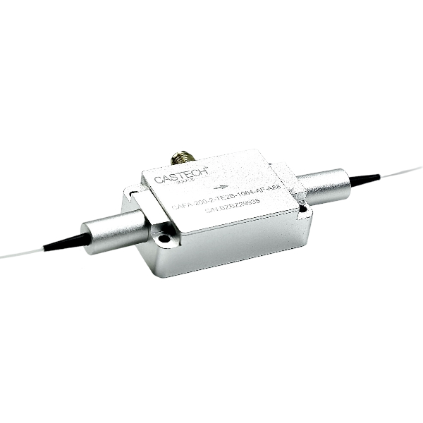Компания CASTECH спроектировала и разработала серию оптоволоконных (с сохранением поляризации и без сохранения поляризации) AOM с максимальной частотой 300 МГц и временем нарастания 6 нс. Компания CASTECH может изготовить FAOM с параметрами в соответствии с требованиями заказчика, а оптоволоконный выход может быть оснащен FC/APC и другими разъемами по необходимости.