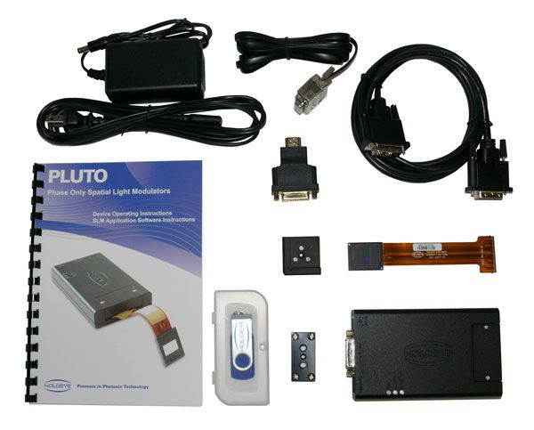 Пространственный модулятор света PLUTO-2.1 осуществляет фазовую модуляцию и состоит из драйвера со стандартным цифровым видео интерфейсом (HDMI) и отражающей ЖК-панели (LCOS – ЖК на кремнии) с разрешением full HD (1920 x 1080 пикселей) и шагом пикселя 8 мкм. Диагональ активной области панели составляет 0.7", при этом отношение ширины к высоте кадра - 16:9.