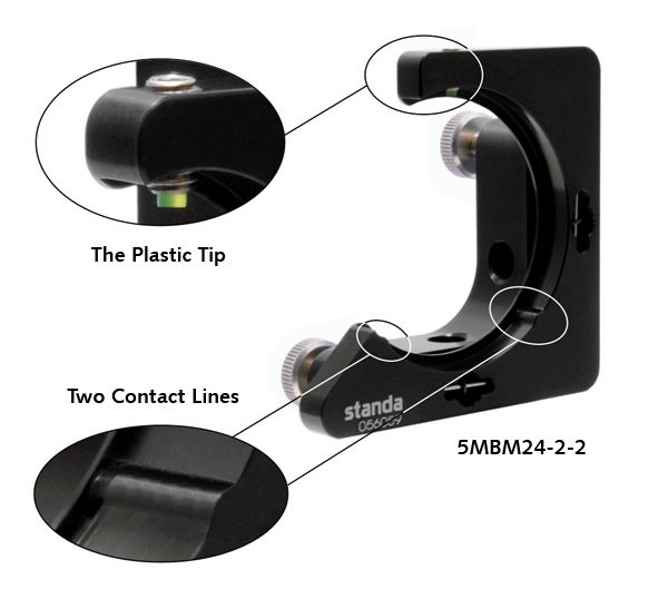 5MBM24 производится с выступом для фиксации оптики. Один фиксирующий винт (два в держателях с квадратной апертурой) прижимает оптический элемент к жестким ребрам, которые обеспечивают 2 точки опоры. Чтобы предотвратить повреждение оптики, наконечник фиксирующего винта сделан из пластика.
