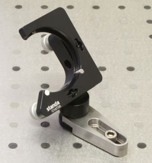 Платформа стянута двумя жесткими винтовыми пружинами, обеспечивающими тугую кинематическую посадку. Толстое основание повышает стабильность. Это позволило удалить часть крепления, оставив свободным один край оптического элемента. Используется в схемах, где вы работаете с двумя близко расположенными лучами.