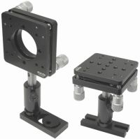Высокостабильные держатели с точной регулировкой являются универсальными, надежными и обеспечивают высокую стабильность юстировки. Независимый наклон вокруг двух горизонтальных осей - 6° с чувствительностью 3 угловых секунды. Линейное перемещение - 5 мм, чувствительность – 1мкм. Для возможности перемещения третий актуатор устанавливается на место съемного гнезда и опорного штыря. Для увеличения стабильности платформа стянута тремя специальными пружинными блоками, винты упираются в опорные поверхности из закаленной стали.