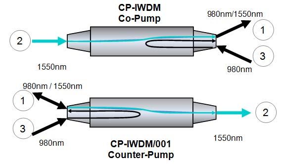 Доступны два варианта компоненты, отличающие между собой направлением изолятора сигнального порта: CP-IWDM и CP-IWDM/001.