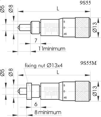 Эти юстировочные винты с очень высокой точностью. 9S55 устанавливается в отверстие Ø8. Возможно крепление дополнительным фиксирующим винтом (не входит в комплект). 9S55M производится с дополнительной резьбой и фиксирующей гайкой. Гайка затягивается с обратной стороны. Ручка из нержавеющей стали или алюминия
