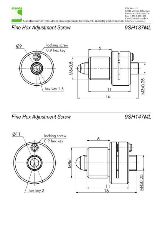 При заказе оптомеханических элементов с этими винтами, фиксирующая гайка будет включена в комплект, если стенки приобретаемого элемента тонкие. В остальных случаях вы можете заказать гайку отдельно. Можно заказать винты с любым диапазоном перемещения. Модели ML, MN, MF являются фиксируемыми.