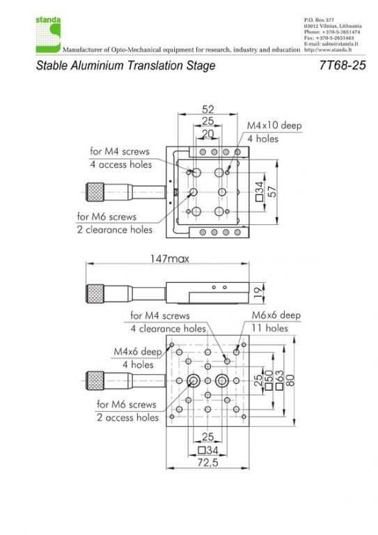 В базовой пластине имеется два сквозных отверстия под винты М6 для быстрого присоединения. Платформа имеет сквозные отверстия под винты М4. В стандартной версии используются микровинты 9S75M-25.