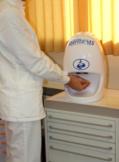 Чтобы начать процесс санитарно-гигиенической обработки, необходимо поместить руки в соответствующую нишу, и процесс распыления начнется автоматически.