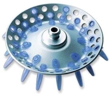 - Ротор для пробирок микроцентрифуги объемом 48 x 1,5/2 мл. Могут быть установлены с использованием прокладки ротора,чтобы увеличить объем пробирок 96 x 1,5/2 мл вдвое (F–45–70–11).