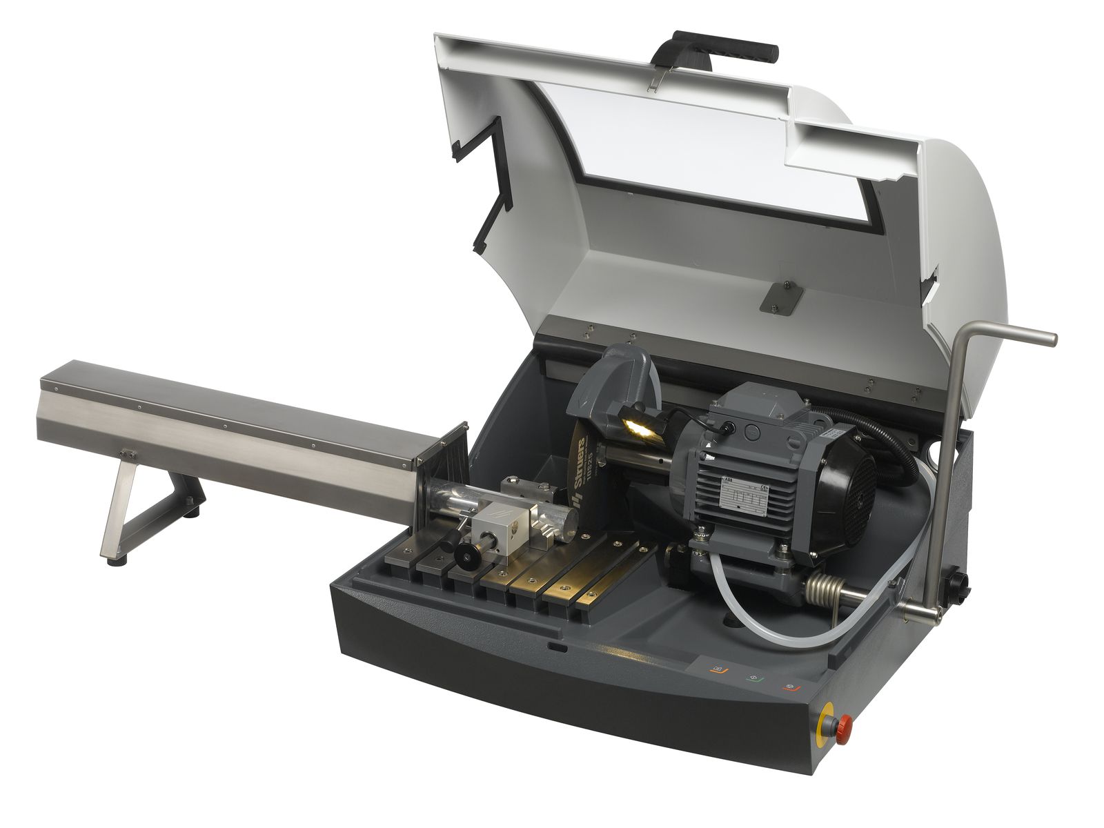Ручной отрезной станок для резки материалографических образцов. Надежная конструкция, большой отрезной стол, просторная отрезная камера, мощный двигатель и эффективное охлаждение позволяют производить быстрое и точное отрезание образцов в лаборатории или на производстве.