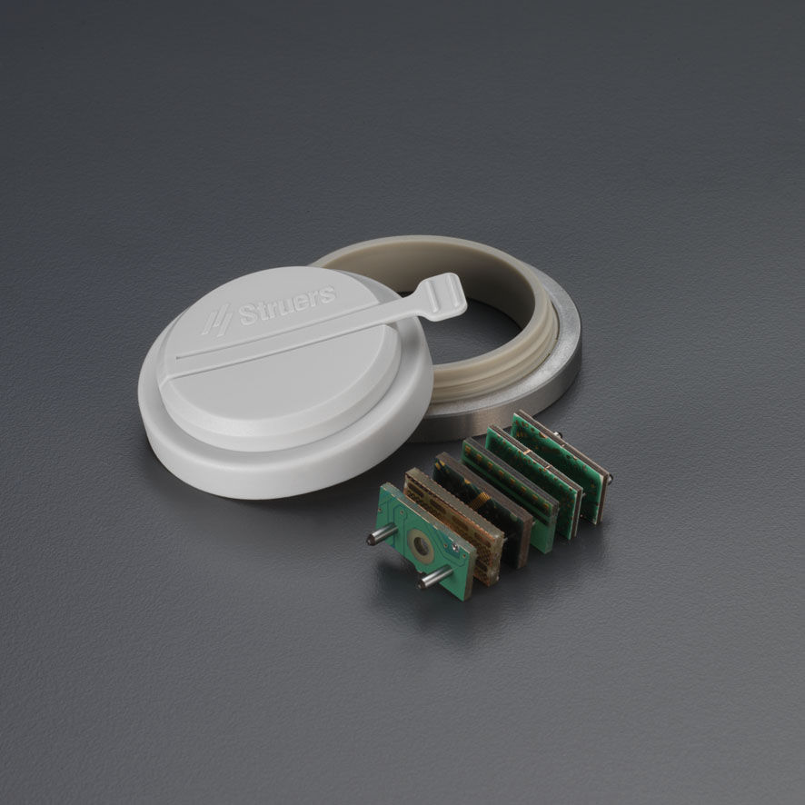 Struers разработали специальное приспособление ViaKit, которое максимально облегчает процесс приготовления купонов (образцов) печатных плат. ViaKit разработан специально для использования вместе с ViaSampler и включает в себя все необходимое для установки, запрессовки и подготовки купонов печатных плат. Высокая производительность дальнейшей подготовки обеспечивается использованием специального образцового держателя для одновременного приготовления до 36 образцов.