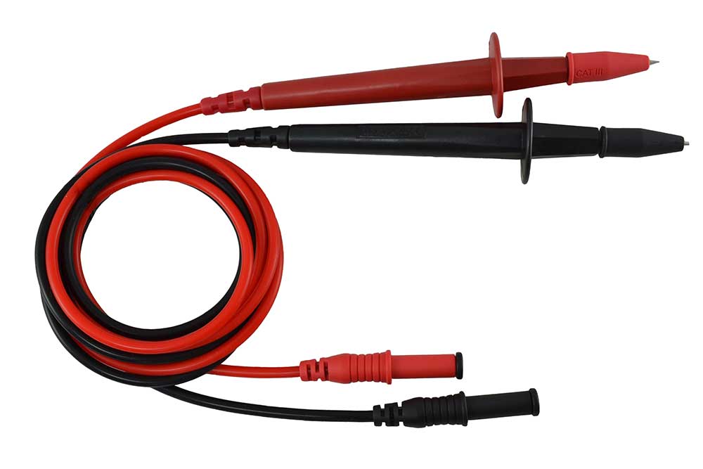 Измерительный провод (красный (R), черный (B) или зеленый (G)): "щуп - банан", жало подпружиненное в чехле, диаметр жала 4 мм, силиконовый провод в двойной изоляции, 1 м, 1000 В.