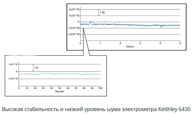 Keithley 6430 — это комбинация прецизионного, малошумящего, высокостабильного источника питания постоянного тока с малошумящим мультиметром (6 ½ разрядов), имеющим высокую стабильность и высокий класс точности.