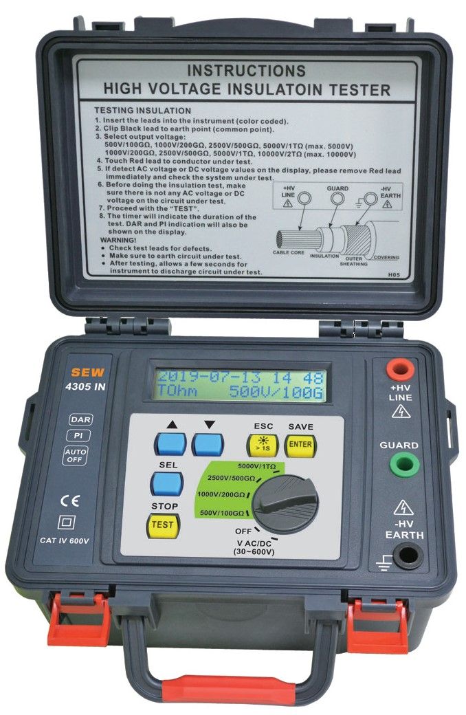 | Испытательное напряжение | 500 В, 1000 В, 2500 В, 5000 В |