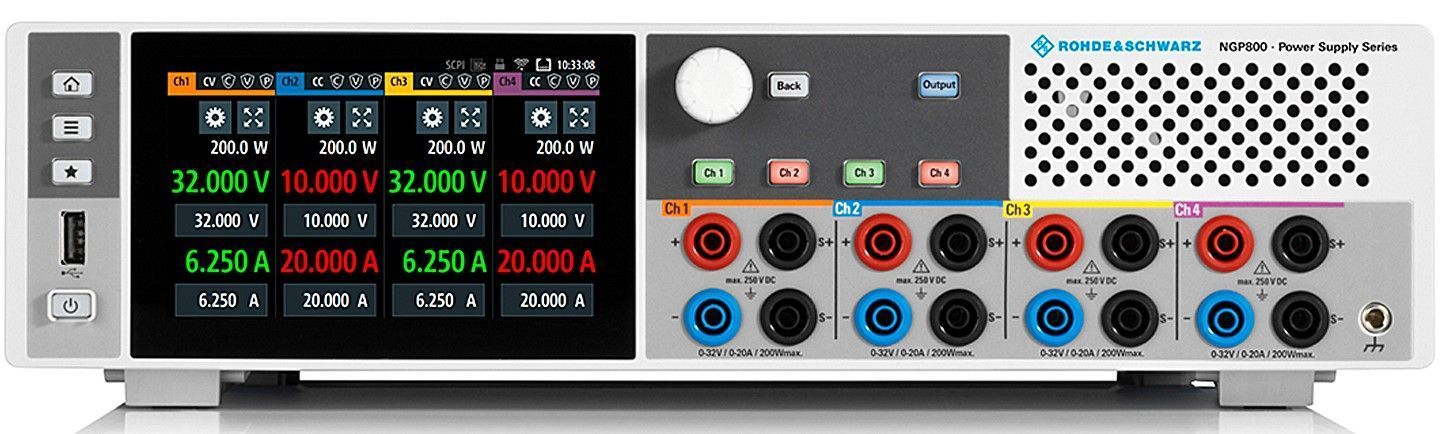 Источник питания NGP822 - это двухканальный прибор с максимальной мощностью до 400 Вт, который используется для разработки, производственного контроля и диагностического тестирования электроники.