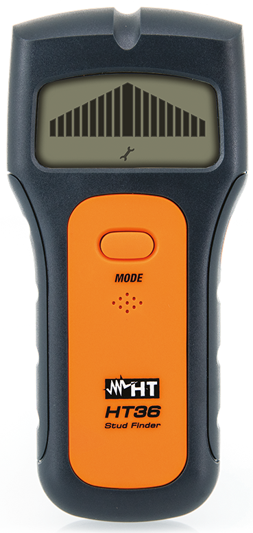 Цель: убедиться в отсутствии указанных целей перед сверлением, штроблением или же другими строительно-ремонтными работами. Либо наоборот, чтобы точно локализовать именно эти элементы для выполнения работ с ними. Прибор HT36 имеет всего 2 кнопки управления и ЖК-индикатор с графической шкалой. В режиме сканирования проводящих материалов детектор определяет не только металл (железо, чугун, сталь), но и объекты из цветных металлов: медь и алюминий и их сплавов. Детектор имеет звуковую и визуальную индикацию при детектировании цели и отображение выбранного режима работы. Каждому режиму соответствует своя пиктограмма на дисплее.