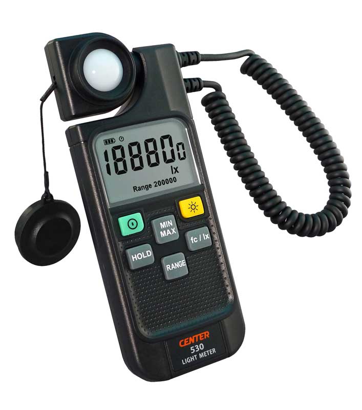 Измеритель освещенности, измерение освещения 0…199999 Люкс, разрешение 0,01 люкс, 2 измерения в секунду, питание ААх2, 169 x 63 x 37 мм, 210 г.