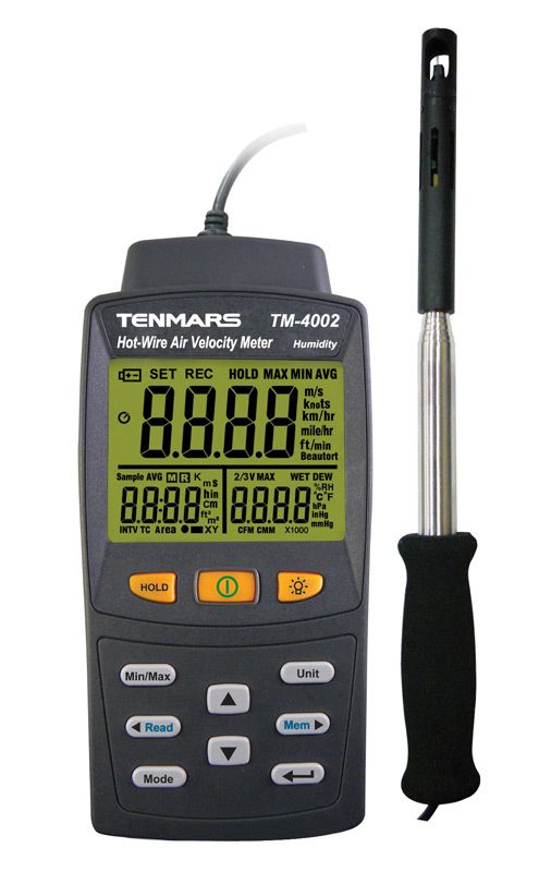 - Измерение скорости воздушного потока и воздухообмена в закрытых помещениях (м/с, км/час, миль/час фут/мин, узлов)