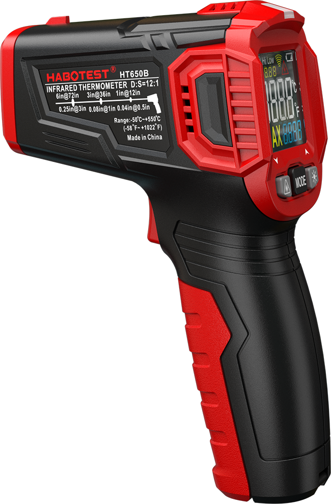Инфракрасный термометр Habotest HT650B предназначен для бесконтактного измерения температуры. Пирометр определяет температуру поверхности объекта путем измерения энергии инфракрасного излучения от поверхности объекта.