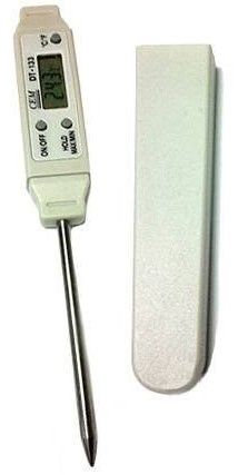 Для работы с термометром необходимо снять защитный чехол, нажать кнопку «ON/OFF» (Вкл. /Выкл.) и поместить щуп (не менее, чем наполовину своей длины) в измеряемую среду. На экране отображается текущее значение температуры среды измерения. Для увеличения реального срока службы батареи термометр автоматически выключается примерно через 20 минут.