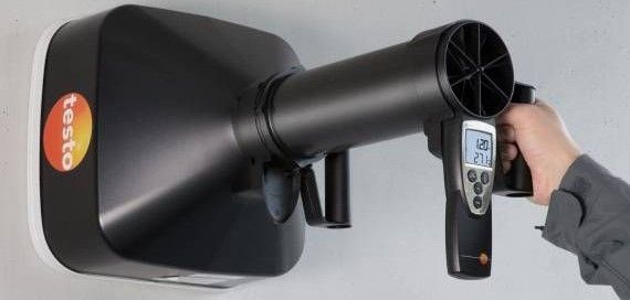Компания Testo – единственный производитель измерительных решений для быстрых и одновременно высокоточных замеров на вихревых диффузорах. Оптимальную поддержку при измерениях скорости потока воздуха на вихревых диффузорах вам окажут анемометр с крыльчаткой testo 417 и инновационный выпрямитель потока testovent 417.