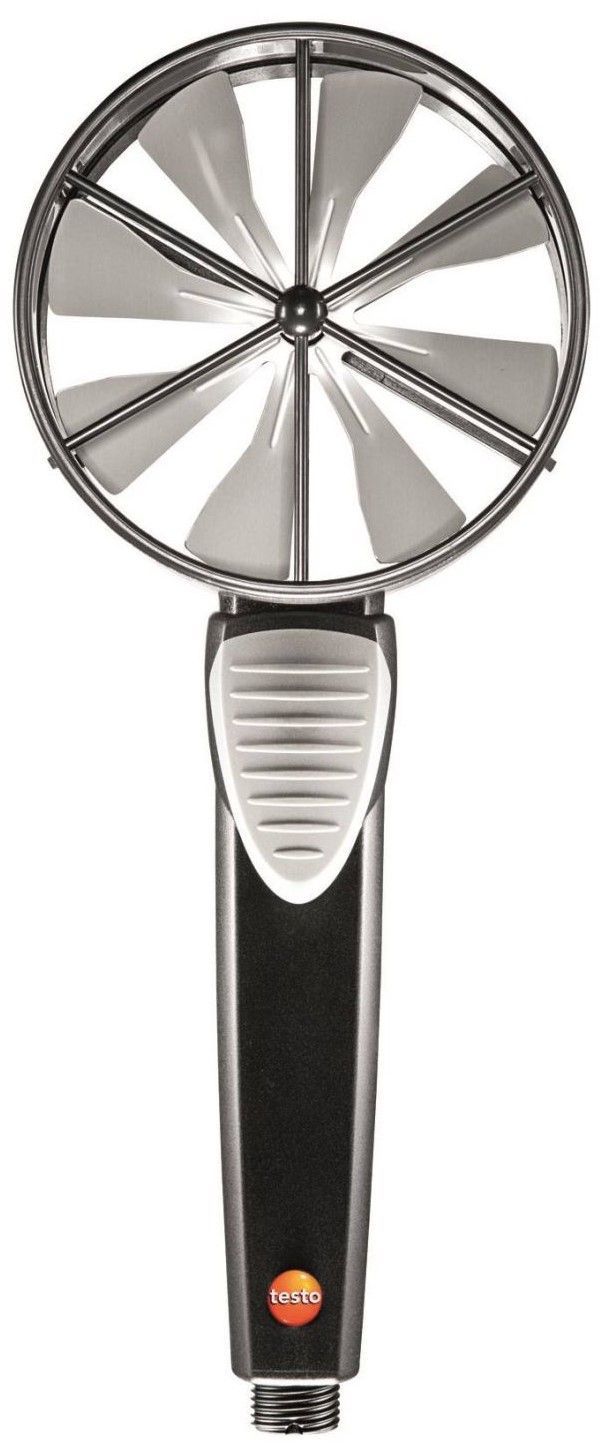 Используйте зонд-крыльчатку диаметром 100 мм для определения скорости воздуха и объемного расхода на вентиляционных отверстиях. Благодаря встроенному сенсору температуры зонд также измеряет температуру до +60 °C.