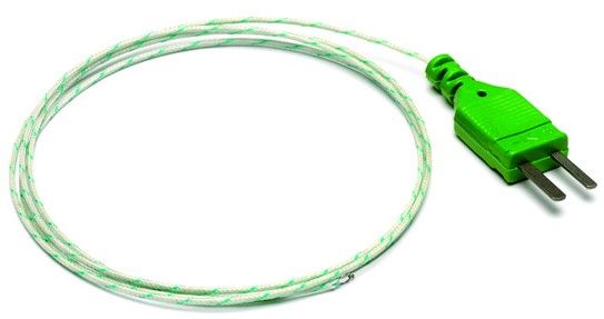 Термопара К типа с изоляцией из стекловолокна: диаметр датчика 1,5 мм, диапазон температур -50 … + 250 °C, длина кабеля 1 м.