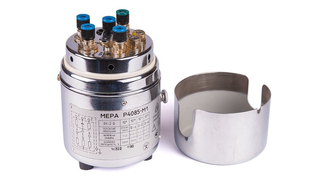 Мера-имитатор электрического сопротивления: 1, 10, 100, 100 ГОм; основная погрешность ±(0,05…0,2)% ; U ном. = 100 В; U макс. = 500 В; масса 1,4 кг