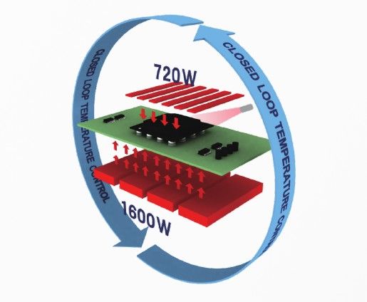 - Для определения температуры поверхности корпуса BGA используется инфракрасный датчик. Таким образом осуществляется регулирование в замкнутом цикле и равномерное распределение тепла.