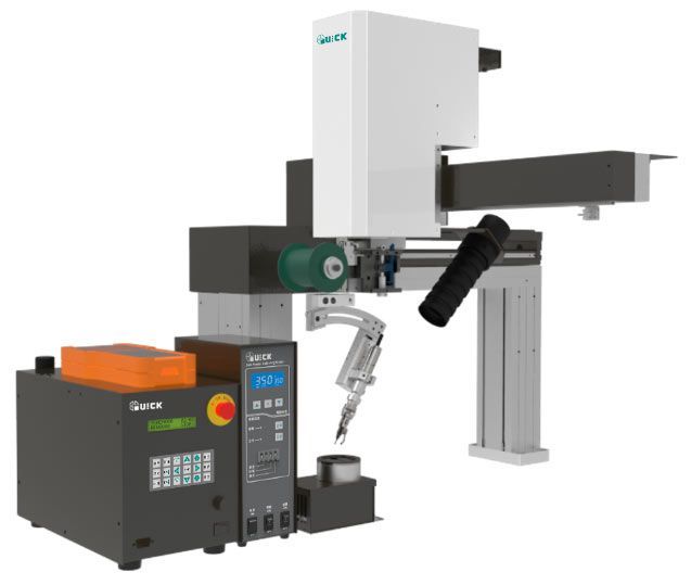 Паяльные роботы QUICK — универсальное решение для монтажа пайкой печатных плат. Основная концепция паяльных роботов QUICK — компактные настольные автоматические паяльные комплексы, с высокой точностью выполняющие с помощью паяльника запрограммированные монтажные операции.