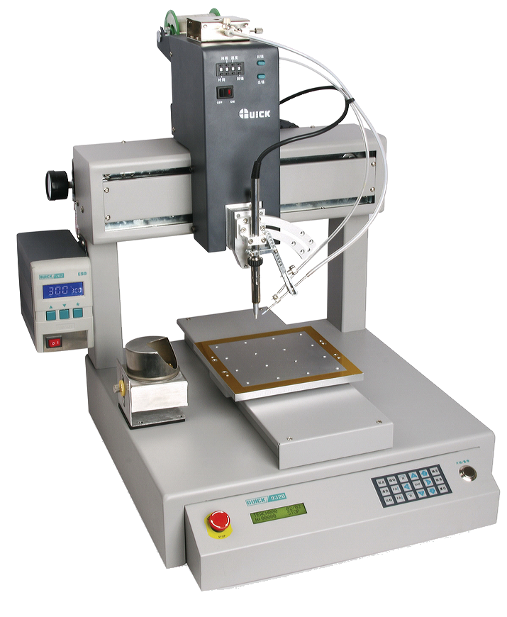Паяльные роботы QUICK — универсальное решение для монтажа пайкой печатных плат. Основная концепция паяльных роботов QUICK — компактные настольные автоматические паяльные комплексы, с высокой точностью выполняющие с помощью паяльника запрограммированные монтажные операции.