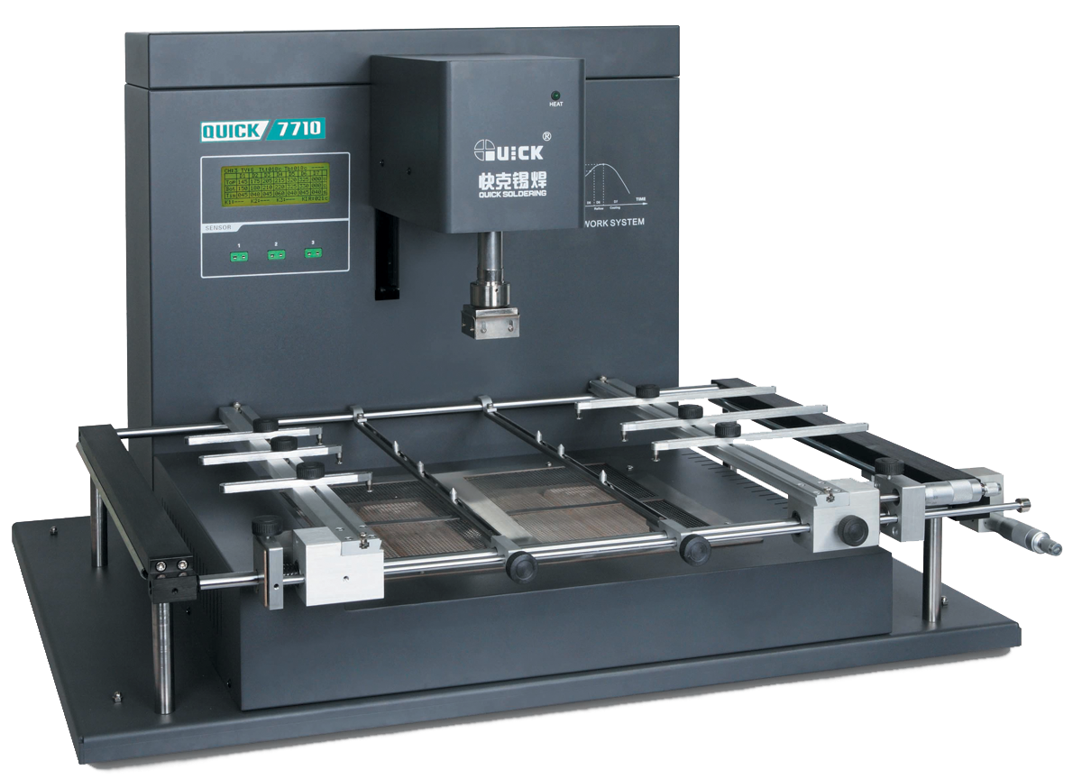 QUICK 7710 предоставляет преимущества совместного использования технологий ИК нагрева и пайки горячим воздухом, удовлетворяя требования монтажа и демонтажа BGA компонентов, особенно с не содержащим свинца припоем.