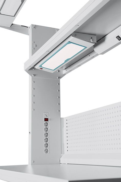 Основное верхнее светодиодное освещение встроено в верхний горизонтальный кронштейн над столешницей.
