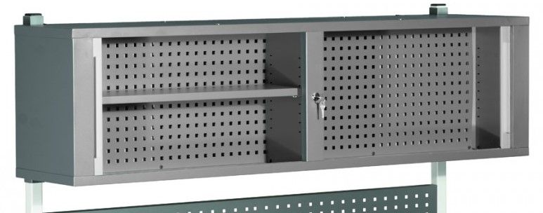 Жалюзийная полка предназначена для безопасного хранения документов, инструментов и комплектующих, оборудована двумя закрывающимися жалюзийными створками и замком посередине.