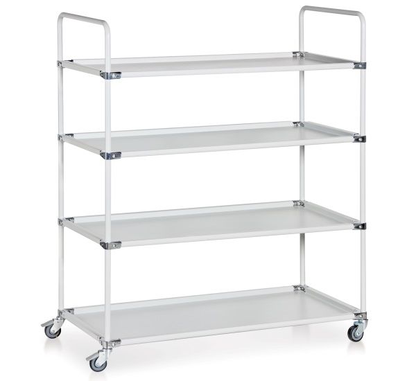 Тележки для перевозки компонентов и изделий. Оснащены регулируемыми по высоте полками и четырьмя поворотными колесами ø75 мм (ТТ-02, ТТ-03) или ø125 мм (ТТ-04) два из которых со стопорным механизмом.