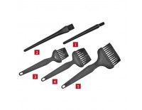 Щетки изготовлены из токопроводящего пластика. Этот материал относится к материалам, которые препятствуют процессу трибоэлектрической зарядки и подавляют генерирование статических зарядов. Щетина закреплена в рукоятке.