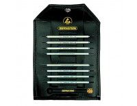 Рукоятка для сменных жал с резиновым антистатическим покрытием. 3 жала шириной 1,5/3,0 мм, 2,0/3,5 мм, 2,5/4,0 мм. 2 крестообразных жала PH 000/PH 00, PH 0/PH 1. 3 шестигранных (звездочки) жала T5/T6, T7L /T8L, T9L/T10L («L» со шпуром).
