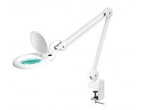 Материал линзы: стекло. Диаметр линзы: 127 мм. Увеличение: 3 диоптрии / 5 диоптрий. Электропитание: 220 — 240 В. Энергосберегающая компактная лампа дневного света Т5 22 Вт. Оснащена электронным балластом. Удобный пантографический механизм для точного позиционирования. Струбцинное крепление к столу. Цвет: белый / черный.