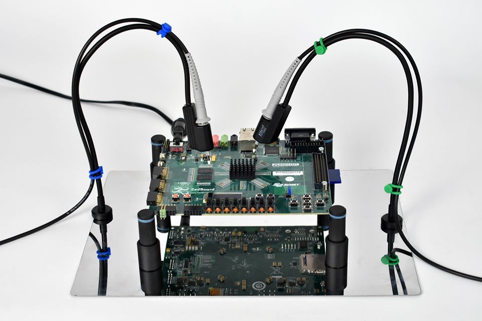 Ваша печатная плата фиксируется четырьмя мощными магнитными стойками с пружинными зажимами для захвата тестируемой платы. В зажимах используется пара сменных изолирующих шайб, чтобы избежать закорачивания дорожек на печатной плате.
