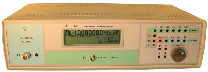 - Два вида внутреннего генератора модулирующего напряжения в режиме АМ и ФМ: синусоидальный, прямоугольный