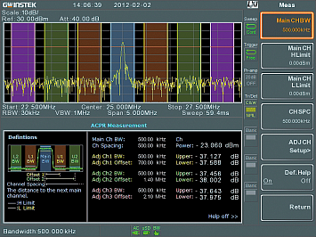 - Измерительный функции - точка P1dB, фазовый шум, ACPR, OCBW, N-dB, дрожание фазы, мощность в канале соотношение мощностей в смежных каналах, TOI, CNR, CSO, CTB, измерение полосы по уровню, анализ модуляции, гармоник и др.