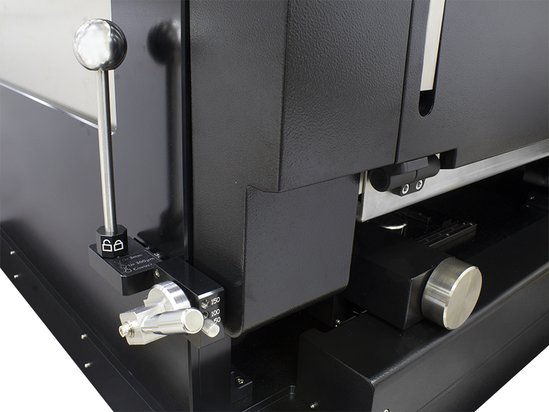 Конструкция механизма подъема платформы с повторяемостью (1 мкм) имеет три отдельных положения для обеспечения контакта, перемещения (300 мкм) и загрузки (3 мм). Механизм подъема также оснащен безопасным запорным приспособлением, которое препятствует случайному наклону платформы. Данные функции предотвращают нежелательное повреждение зонда или полупроводниковой пластины и обеспечивают интуитивное и точное размещение контакта, безопасную установку и повторяемость. Дополнительный фиксатор платформы в положении «контакт» имеет фиксированные высоты (50, 100 или 150 мик.) для легкого и удобного касания кристалла щупами головками.