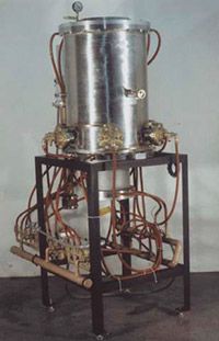 Система подачи газа состоит из вакуум-плотного впускного клапана, сбросного клапана и вакуумного манометра с трубкой Бурдона.