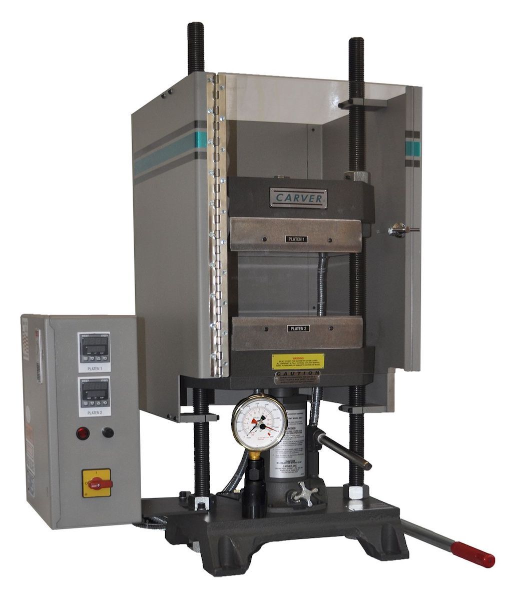Ручные лабораторные гидравлические прессы с цифровыми температурными контроллерами и защитным рабочим экраном усилием 7,5, 12, 25 и 30 тс используется для прямого прессования, литья, ламинирования, склеивания различных материалов и пробоподготовки.