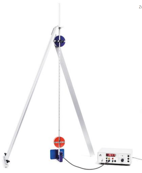 Специальная форма физического маятника для определения локального ускорения под действием силы тяжести g. Стержневой маятник с двумя центрами вращения, с одним подвижным и одним неподвижным дисковым грузом для регулирования периода колебаний. В случае надлежащей регулировки маятник будет колебаться по обеим осям с одинаковым периодом. Маятник подвешен на очень устойчивую опору на игольчатых подшипниках с очень низким трением. Для регулирования ориентации опора оснащена двумя регулировочными винтами и спиртовым уровнем. В набор входит установочная пластина для светового барьера.