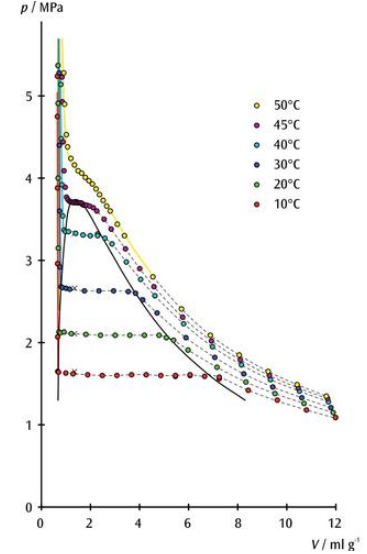 - Запись изотерм на диаграммах pV-p (Amegat)