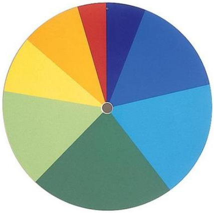 Для демонстрации аддитивного смешения цветов в сочетании с двигателем с приводным управлением (U11040). Пластиковый круглый диск с сегментами красного, оранжевого, желтого, ярко-зеленого, темно-зеленого, голубого, темно-синего и фиолетового цветов. При вращении диска цвета смешиваются с белым цветом.