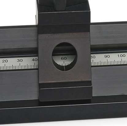 Благодаря отверстию, просверленному в середине основания, и соответствующей шкале, можно напрямую считывать положение центра крепления на оптической скамье.