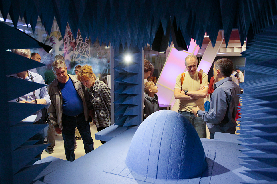 Стенд с безэховой камерой от ООО НПК «ТЕСАРТ» (входит в ГК «Научное оборудование») пользовался особой популярностью, а для юных зрителей были подготовлены специальные подарочные боксы с научно-популярным журналом «ЛюбопытНО» от ГК «Научное оборудование».