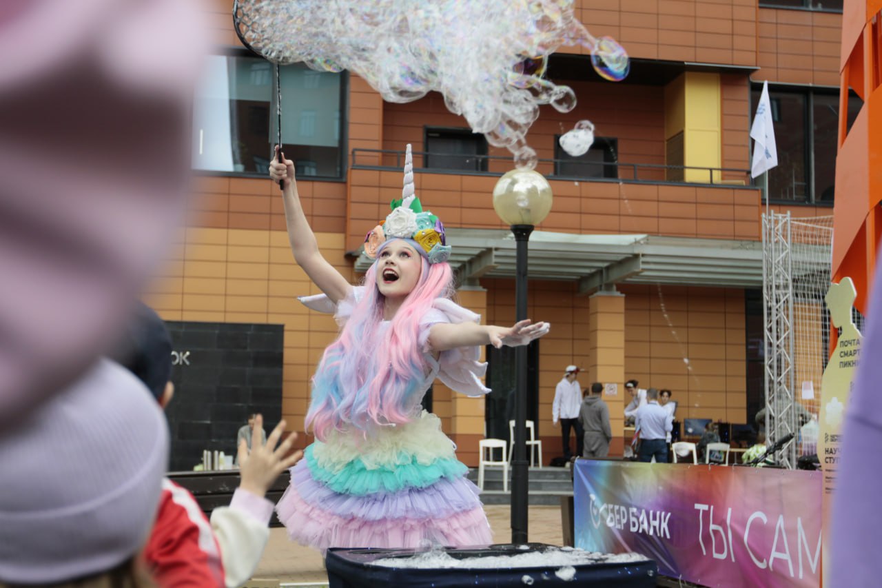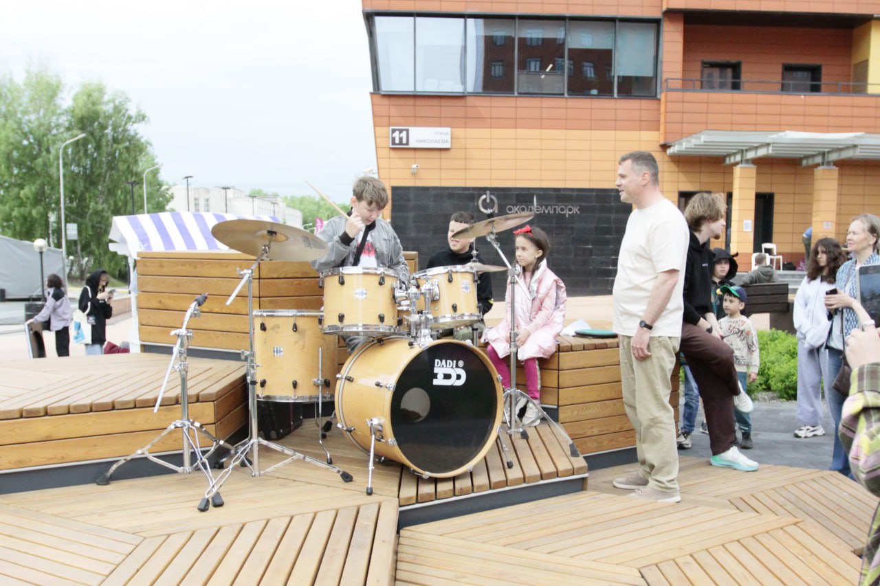 Параллельно с выставкой на улице проходили интерактивы для детей и взрослых. Посетители могли насладиться мастер-классом по игре на барабанах, шоу мыльных пузырей со сказочными аниматорами, фокусами иллюзионистов и даже вкусным мороженым. Локация ГК «Научное оборудование» привлекала взгляды жителей Академгородка и стала отличной площадкой для отдыха и красивых снимков.