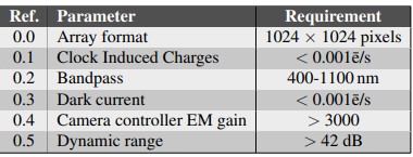 Table 1 Performance requirements of the EMCCD sensor as adopted by the Canadian Space Agency |